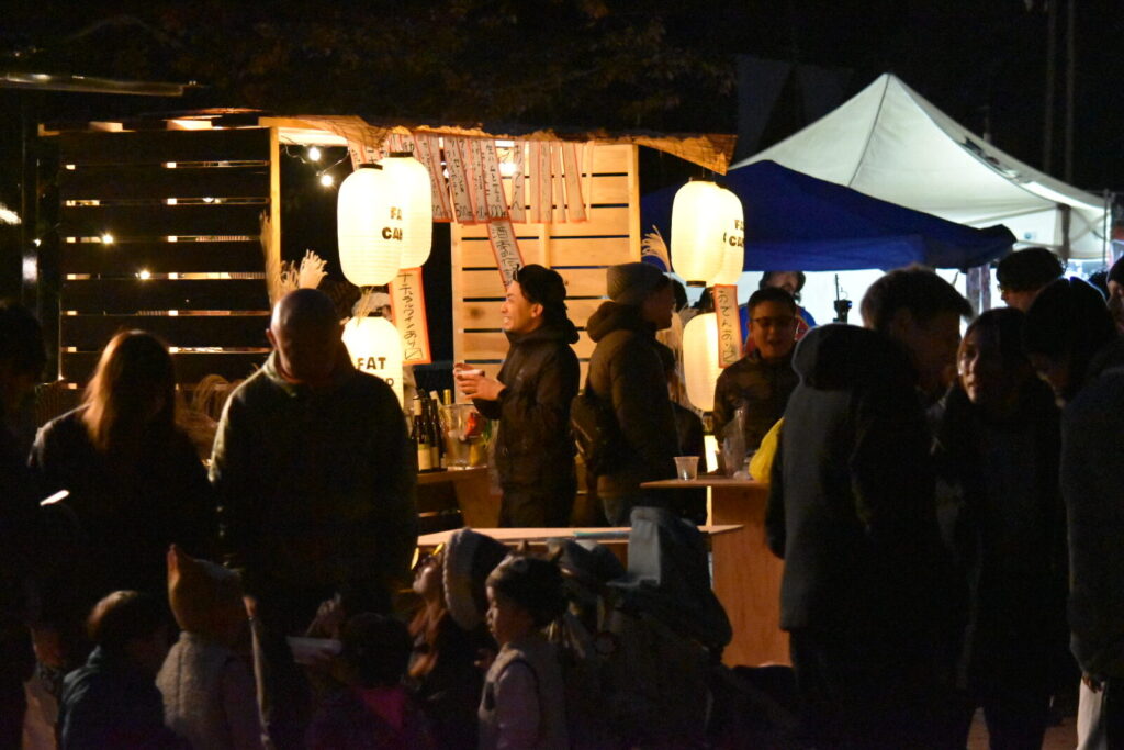 私たちのブースでは七輪に薪をくべて焚き火をしておりました!